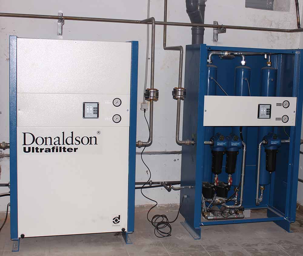 Компресорна станція Ekomak складається з компресорів серії DMD які нагнітають повітря в систему підготовки повітря придатного для дихання.